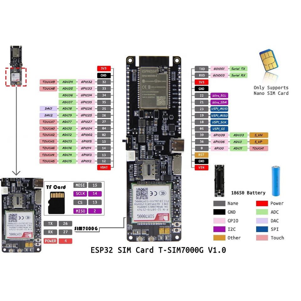 Module LTE ESP32 LILYGO T-SIM7000G avec 4/16 Mo de mémoire Flash, antenne GPS, carte de développement PCBA SIM SIM7000G