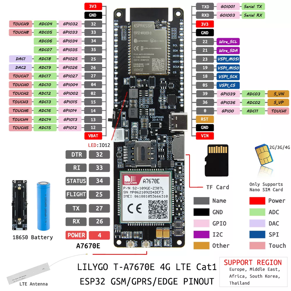 ESP32-WROVER-B,A7670ENuméro de Type