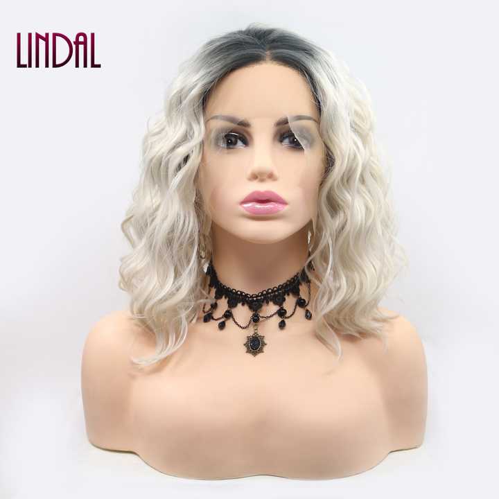 LINDAL Ash Platinum Lace Front Perruques Courte Ondulée Costume Femme Perruque Mixte Blonde Synthétique Faits Saillants Lâche Vague Frontale Dentelle Perruque