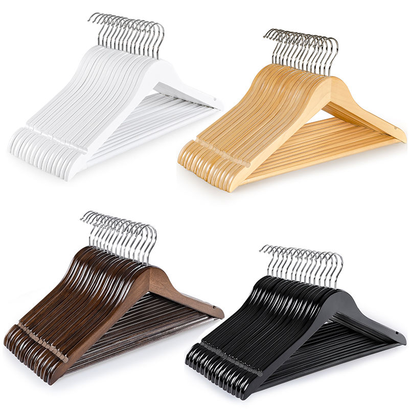 Nom du produit:Cintres en bois vintage blanc naturel et noir pour manteaux, costumes, pantalons et vêtements
