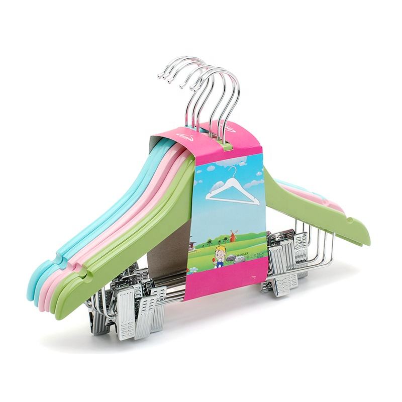 Cintres cylindrique en bois coloré pour enfants, ensemble pour bébés, avec Clips, bon marché, vente en gros