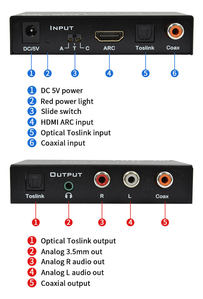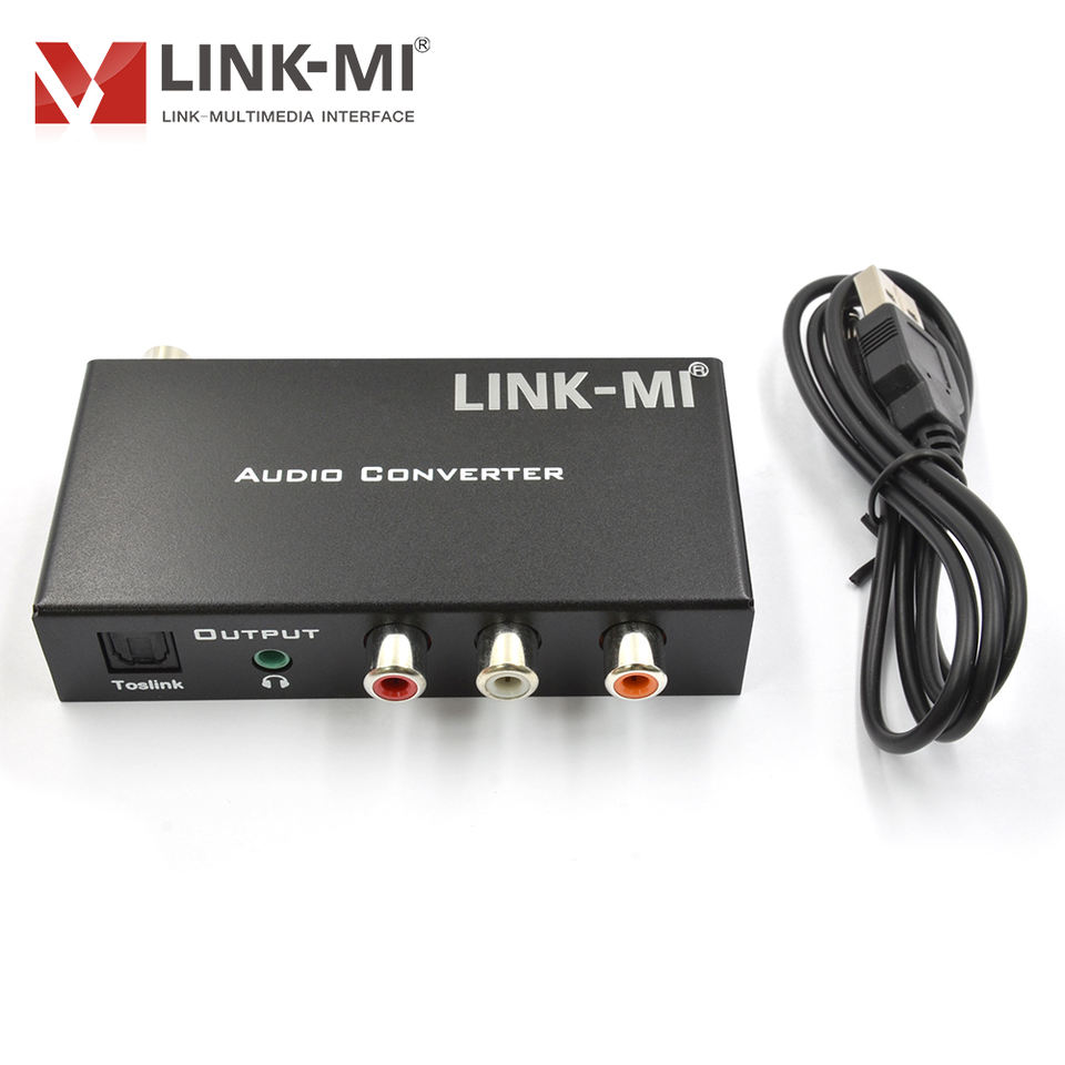 Convertisseur audio numérique et analogique LINK-MI avec prise en charge audio optique, coaxiale, L/R, 3,5 mm, interrupteur coulissant et DTS/Db-AC3/LPCM