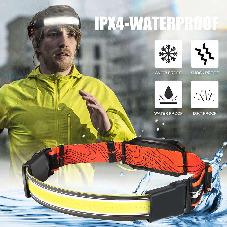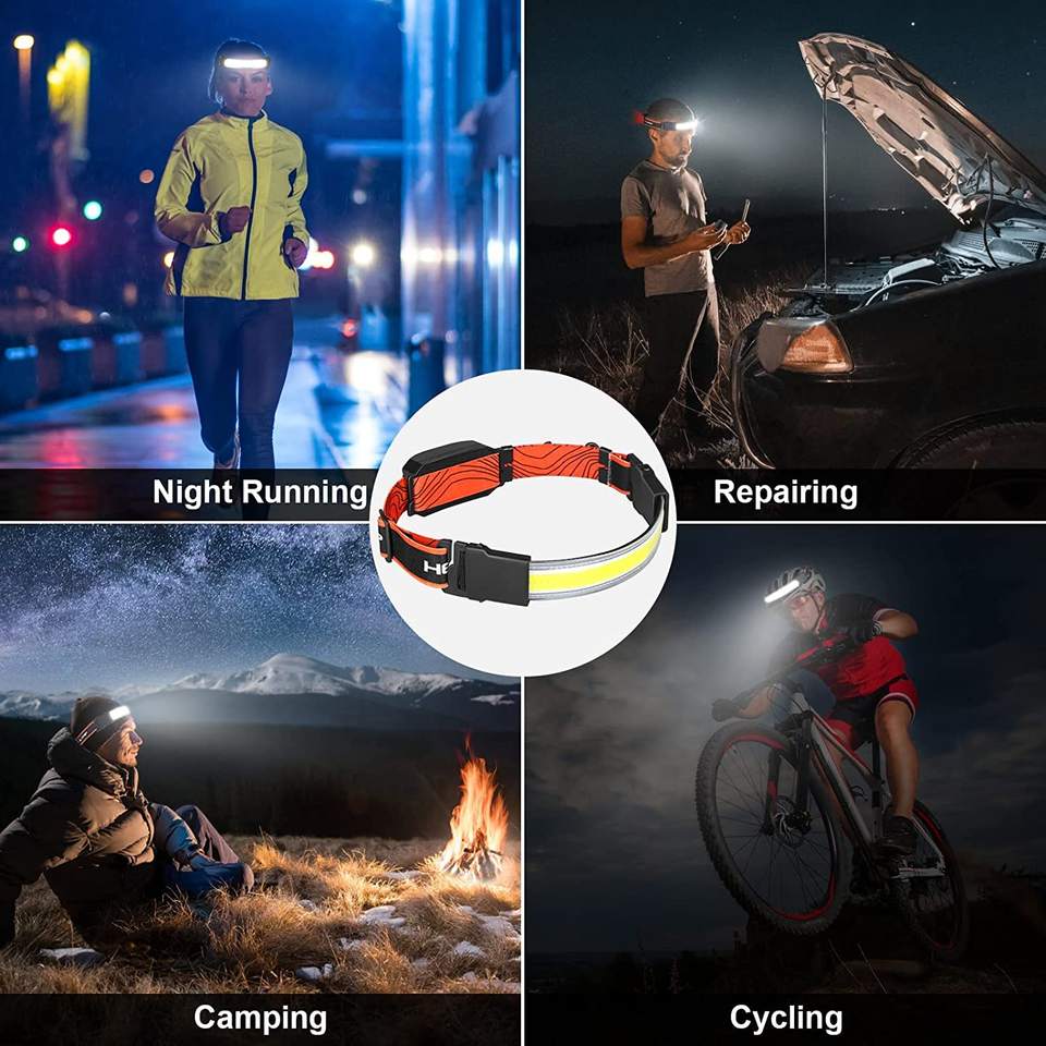LINLI lampe frontale Rechargeable COB bande de projecteur LED bandeau lampe frontale pour l'extérieur avertissement d'urgence course Camping