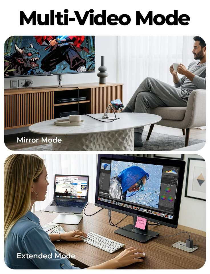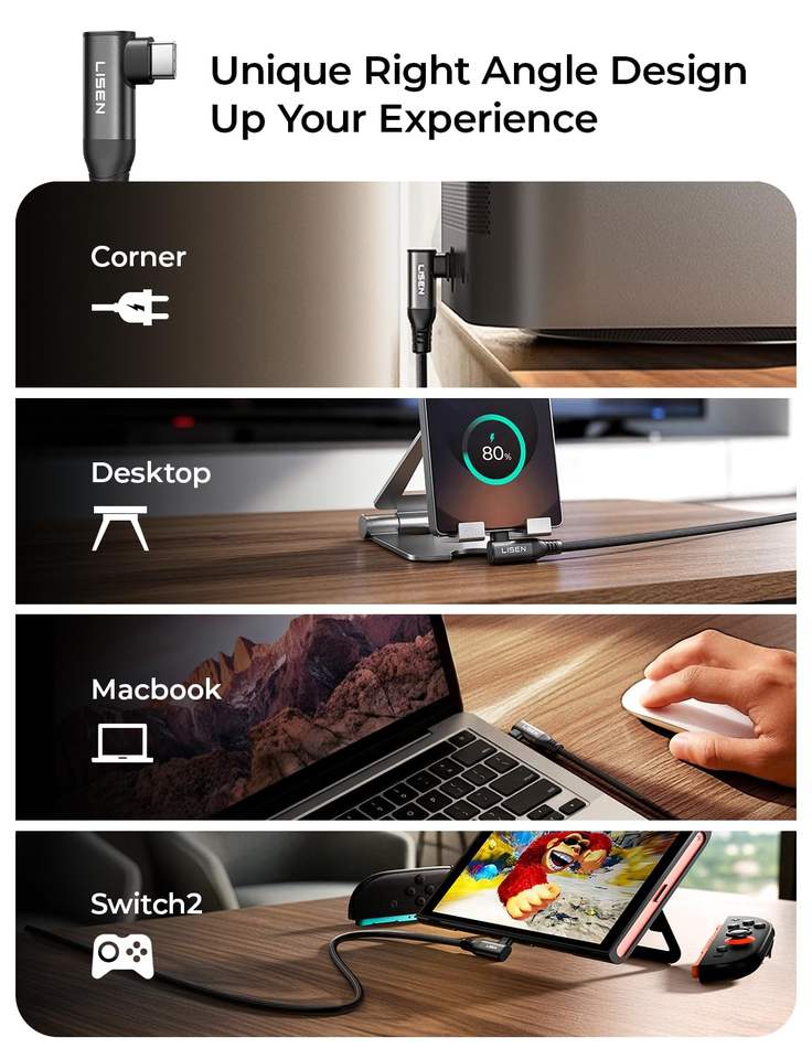 Vidéo UHD 4K à 60 Hz, Charge rapide PD 100 W, Angle droit de 90 degrés