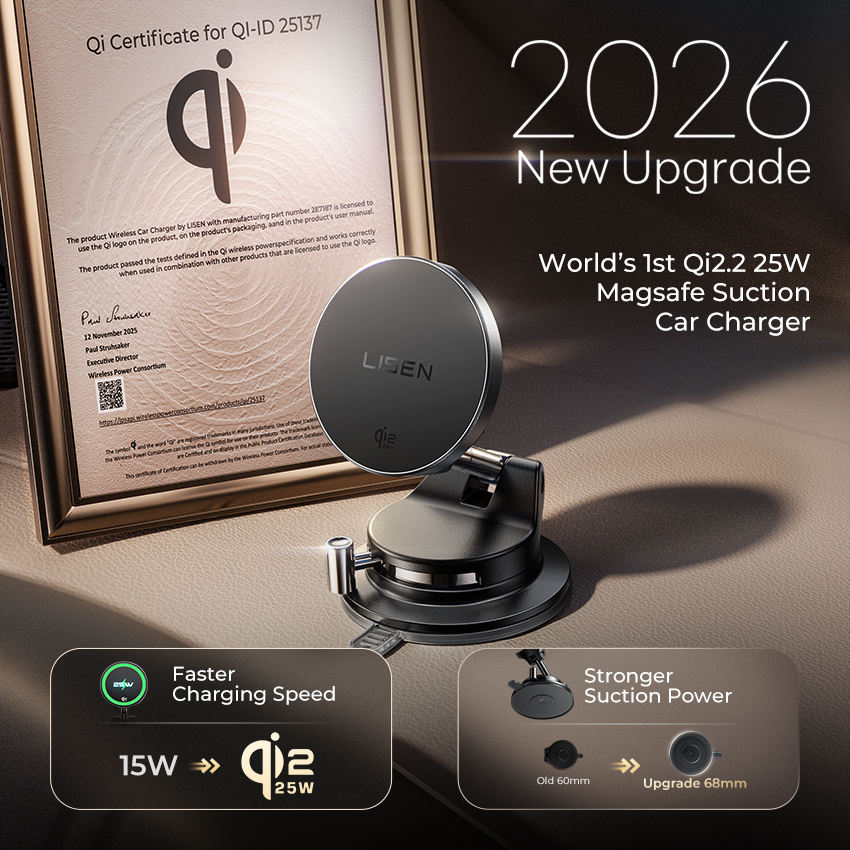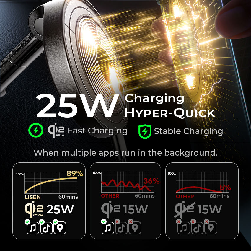 LISEN Qi2 Chargeur de Voiture Magnétique à Ventouse 25W