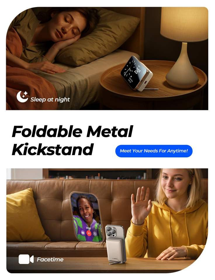 Nom du produit:Batterie externe 15W MagSafe certifiée LISEN Qi2 avec support
