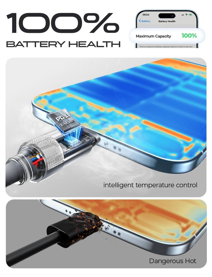 Caractéristique:Livraison de puissance 100W, charge rapide PD3.1, sans enchevêtrement, ultra flexible