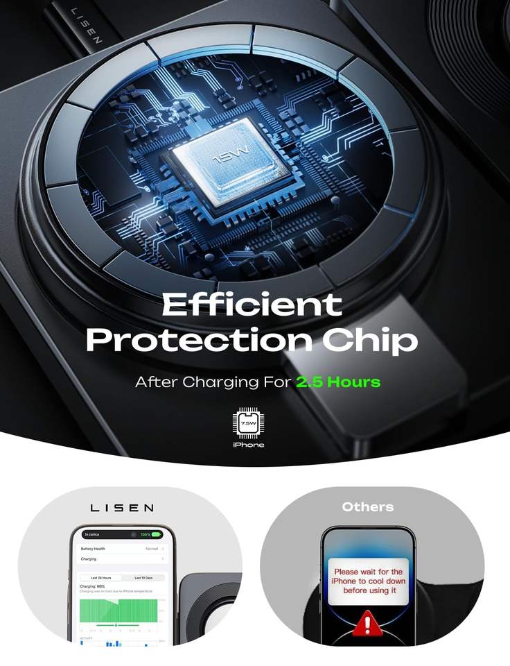 Caractéristique:Charge rapide 15W certifiée Qi2, 180° Aspiration magnétique forte et pliable.