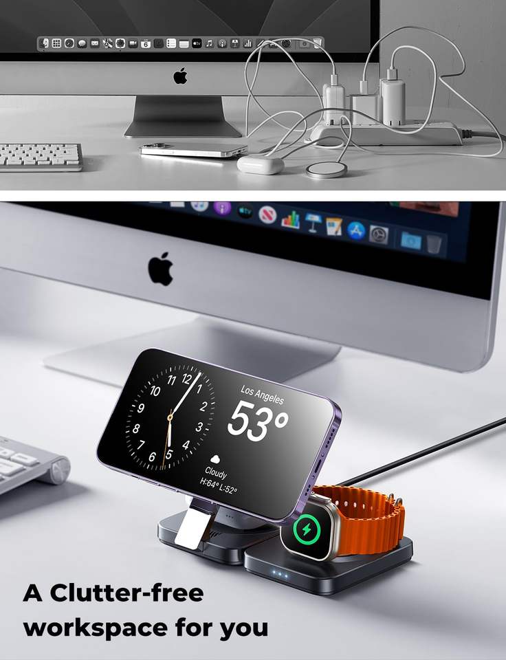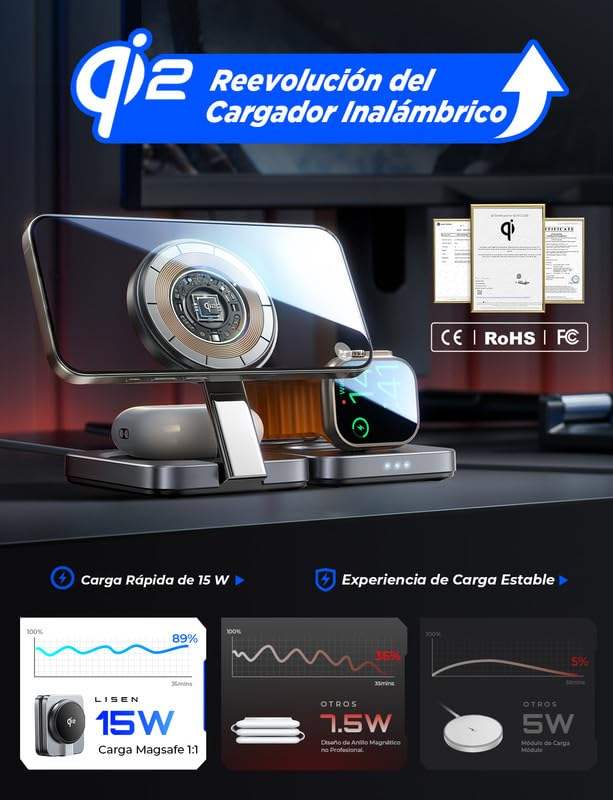 Station de charge sans fil magnétique pliable 3-en-1 LISEN Qi2 15W