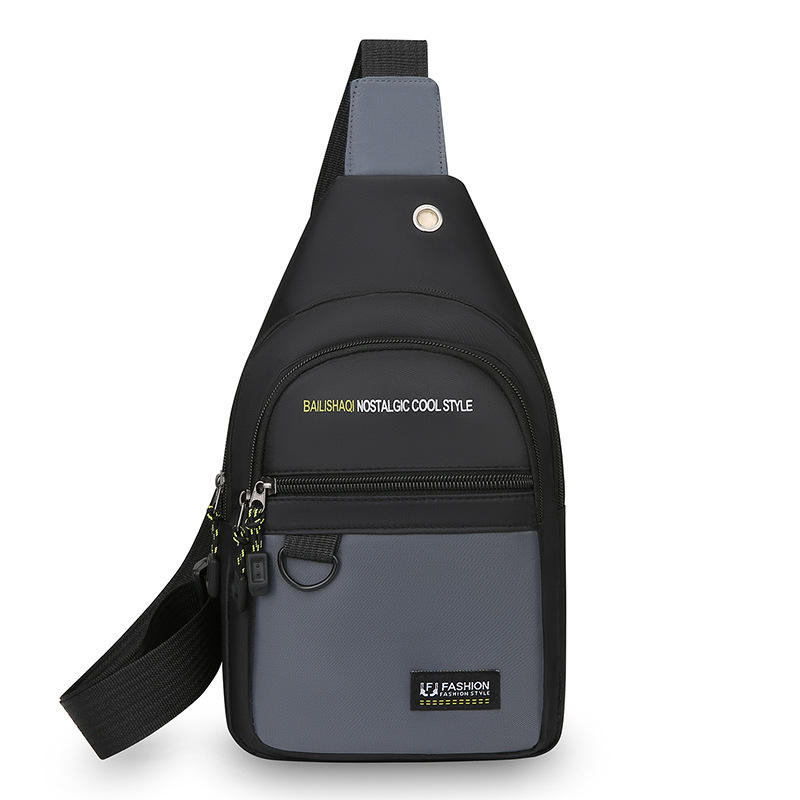 Sac de poitrine en nylon respirant pour homme LJY ZASHUN, grande capacité, sac bandoulière, color block, pour tous les jours, extérieur, voyage, gris