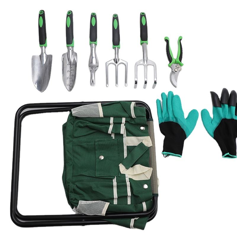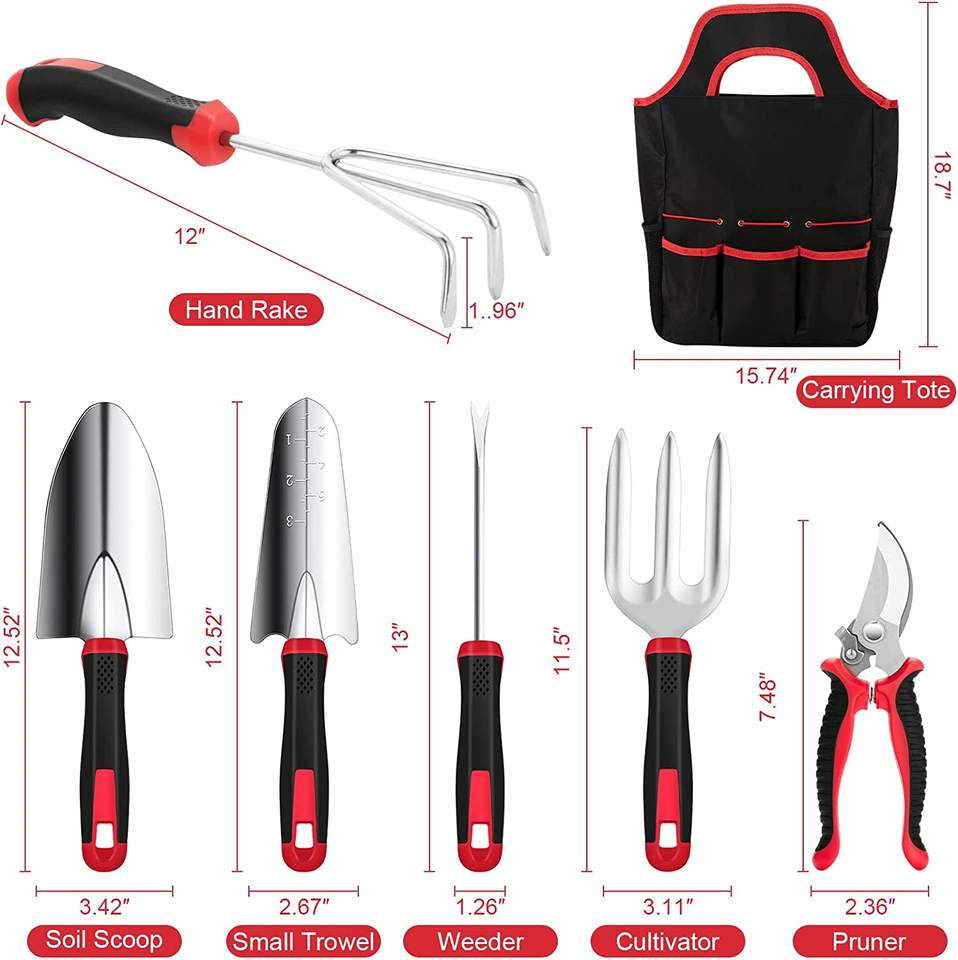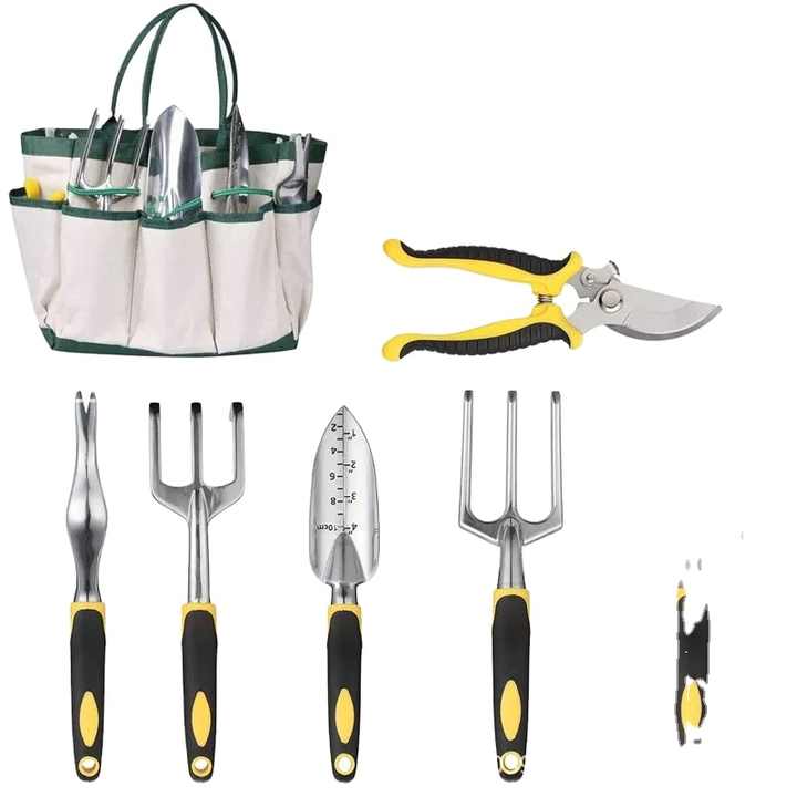 Ensemble complet d'outils de jardinage LK (9 pièces) Kit d'outils de jardinage à main ergonomiques comprenant désherbeur, sécateur, transplanteur, truelle, râteau, sac