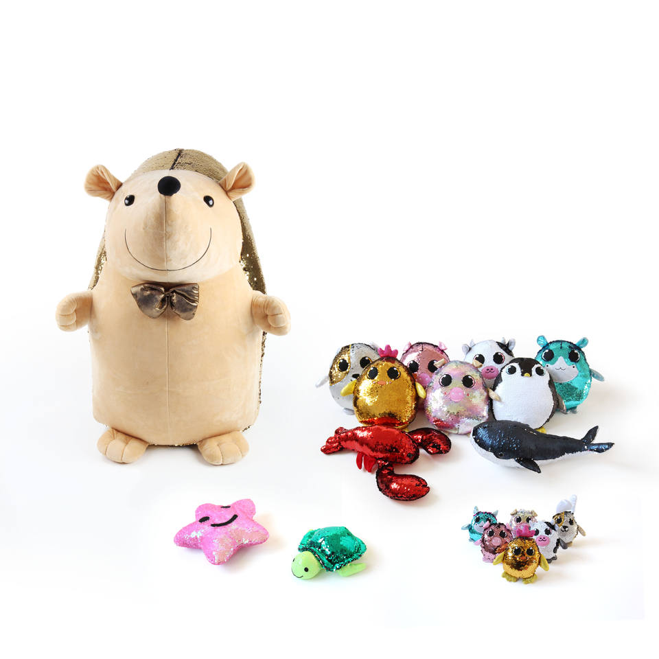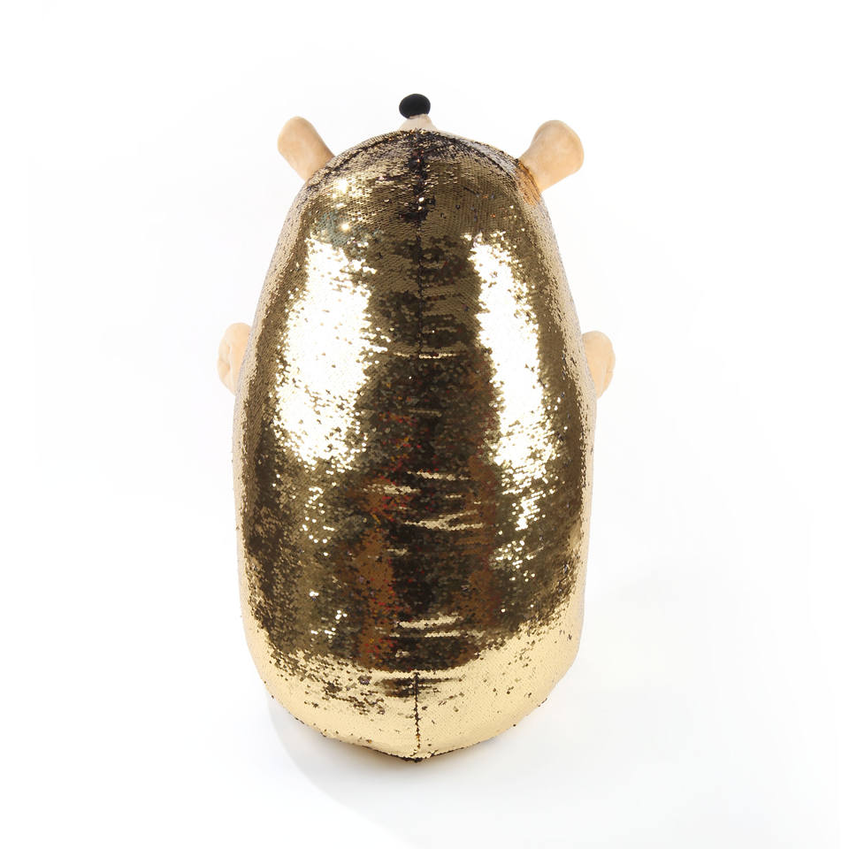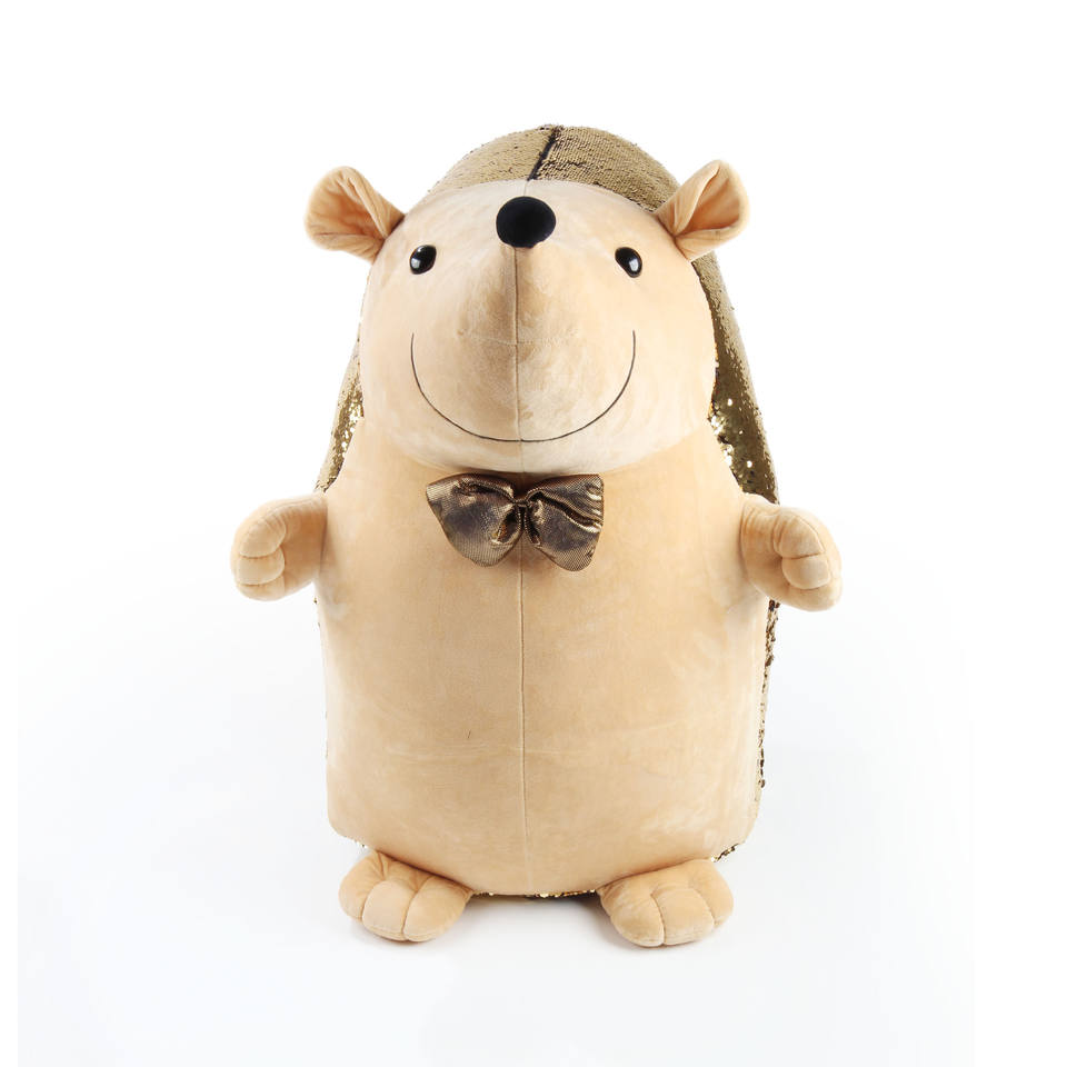 Coussin en tissu à paillettes dorées à pression, motif hérisson, réversible, en peluche, jouet animal
