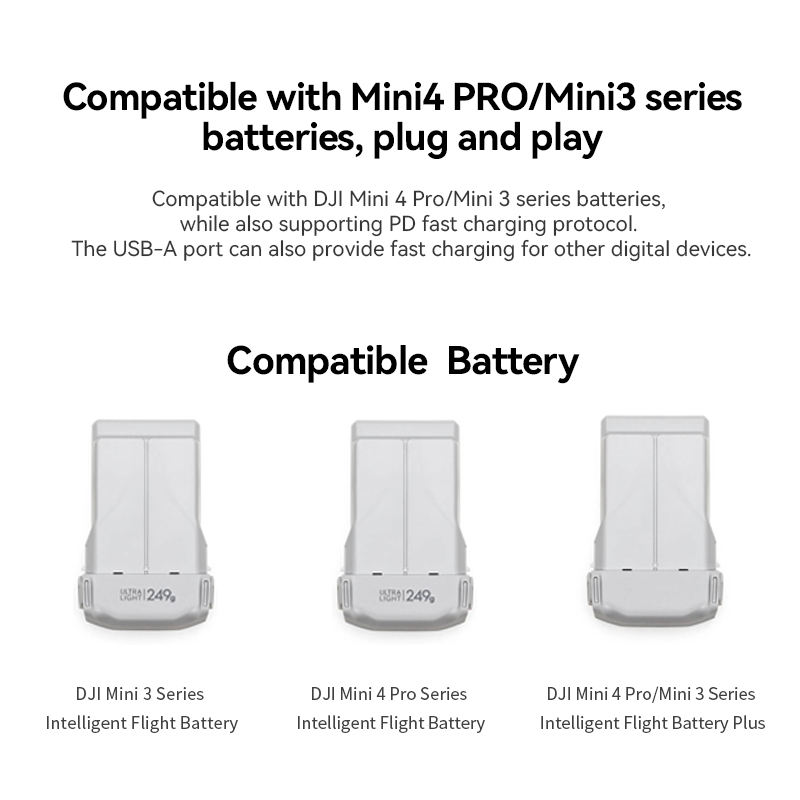 Hub de charge rapide LKTOP 100W pour DJI Mini 4 Pro/Mini 3 Series, chargeur bidirectionnel avec modes parallèle 3 batteries, LED/SOS/stockage