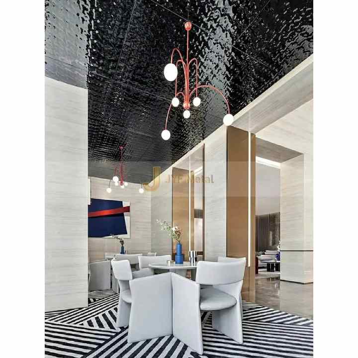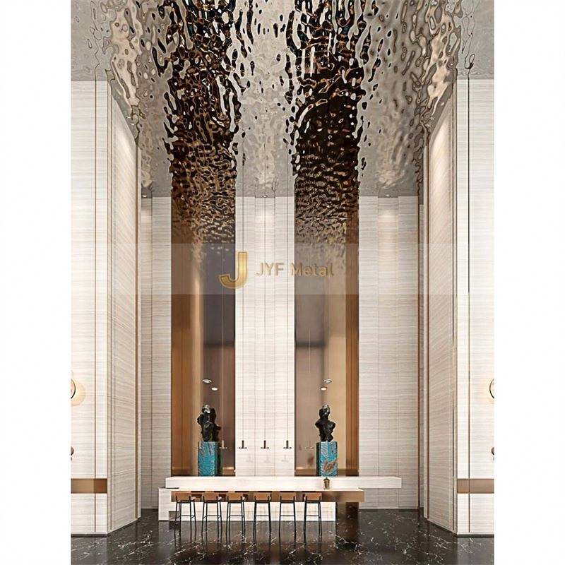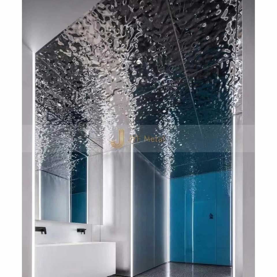 LL259 Panneaux de revêtement décoratifs modernes en acier inoxydable 304 PVD couleur noir miroir à effet vague d'eau pour plafond