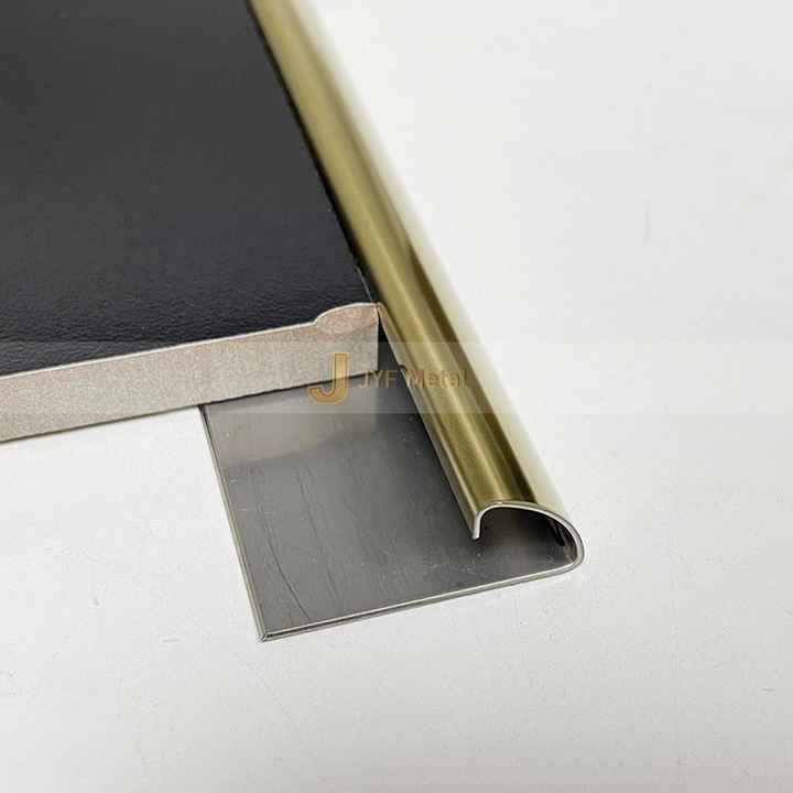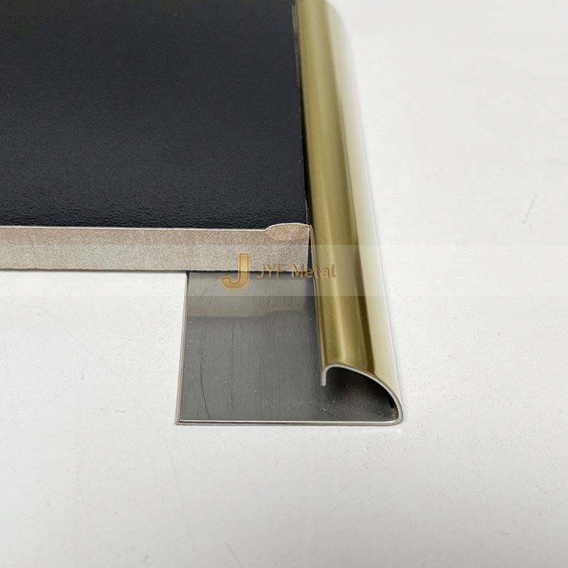 LL303 Profilé de finition en acier inoxydable moderne, PVC argenté, or rose, profilé métallique à coins arrondis pour la protection des carreaux de céramique de forme ronde