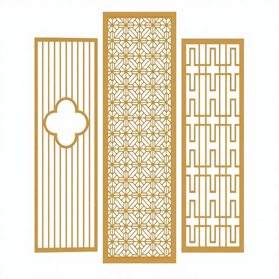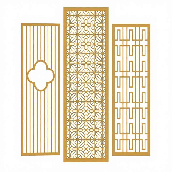 Paravent décoratif mobile en métal de luxe, design personnalisé LL69, en acier inoxydable plaqué or, translucide, fait main