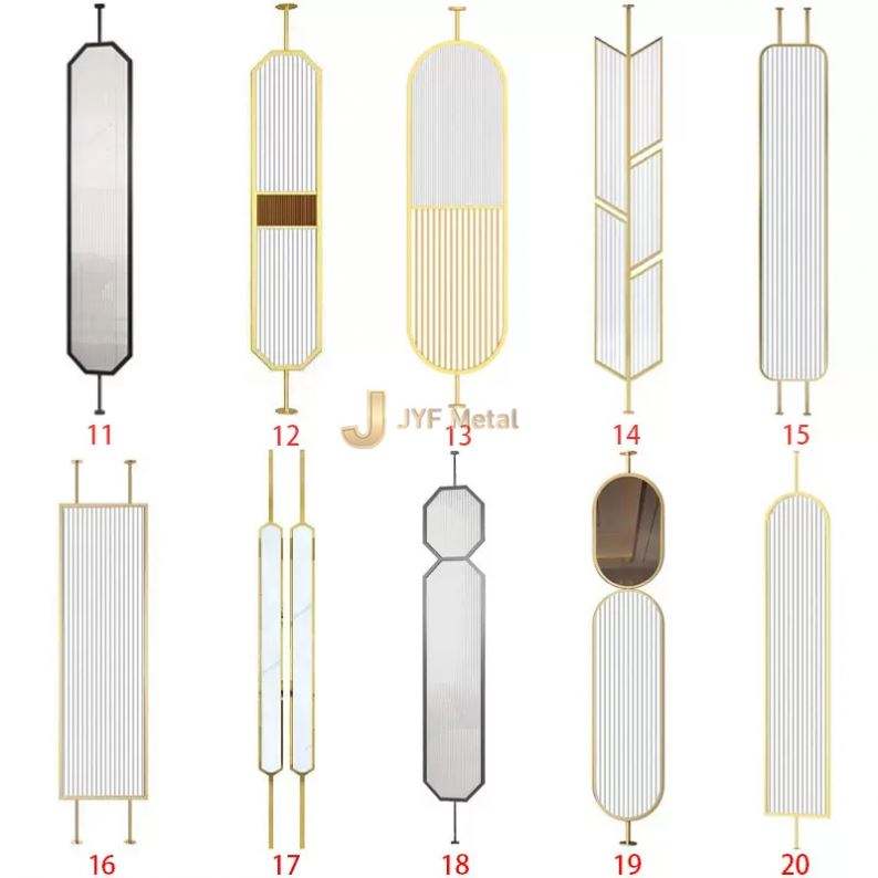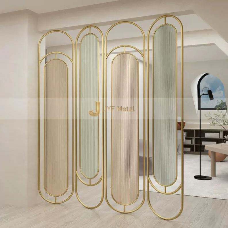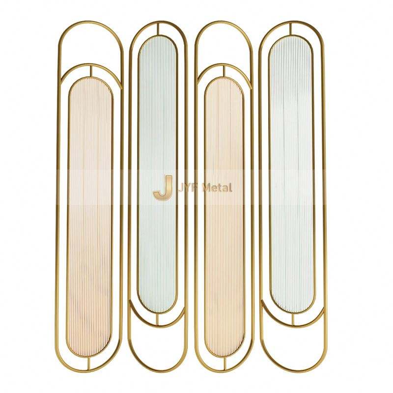 Paravent de pièce moderne en verre translucide LL85, design ovale en métal doré, acier inoxydable 304, cloison étanche, sur mesure