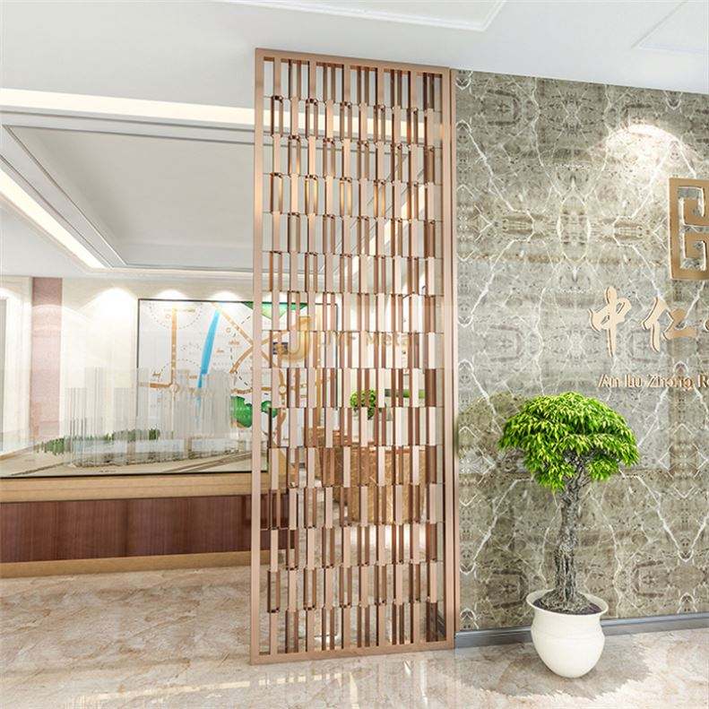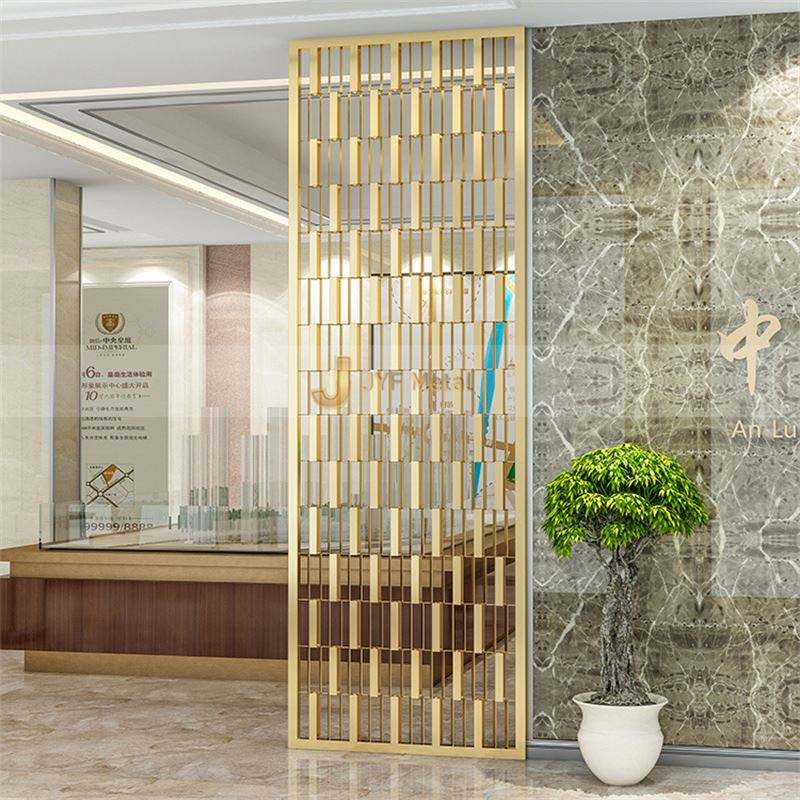 Paravent mobile de luxe moderne en acier inoxydable plaqué or translucide LL93, décoratif pour restaurant