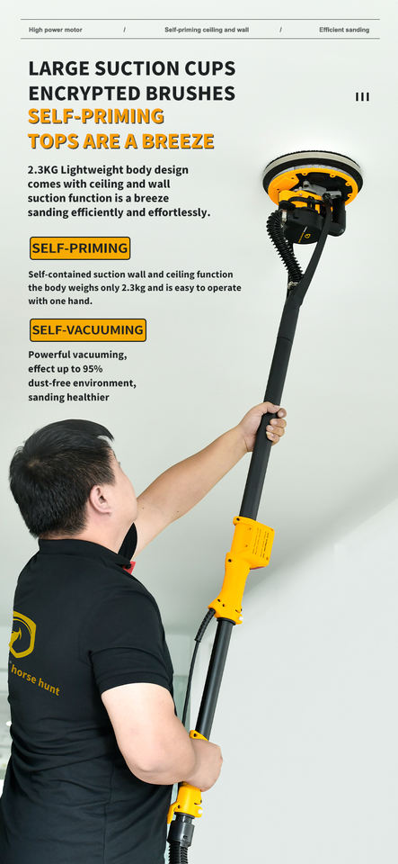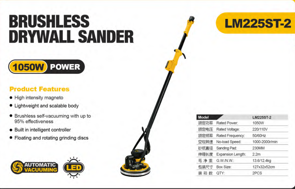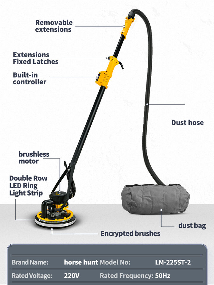 Ponceuse sans balais haute performance LM-225ST-2 avec aspiration automatique des poussières et corps léger pour le ponçage du plâtre sur les murs et les plafonds