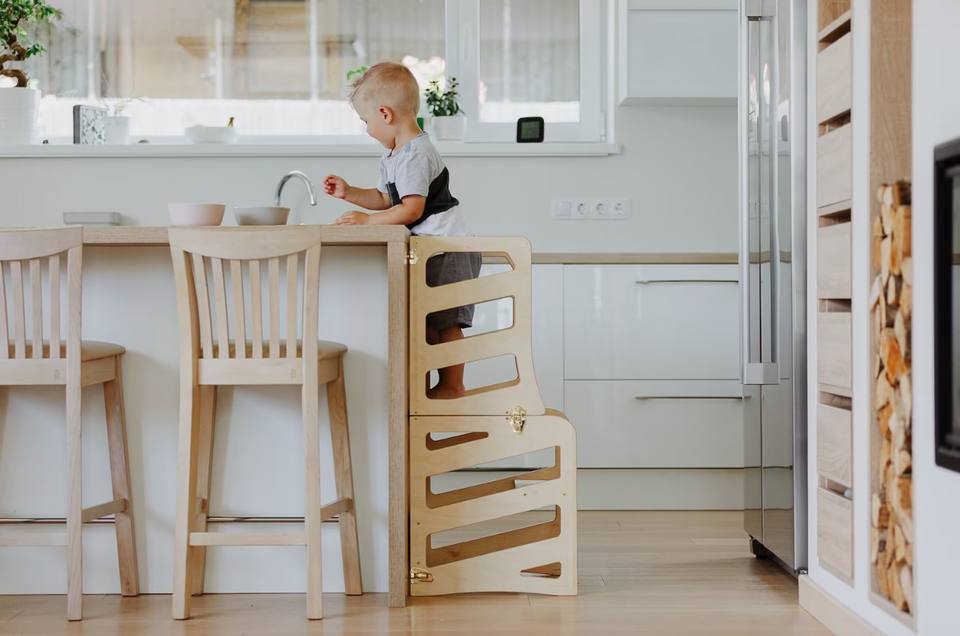 LM KIDS Kids 3in1 Tour d'apprentissage Tour de bureau Montessori Tour en bois Cubes d'apprentissage Tour d'apprentissage extra sûre Tableau noir