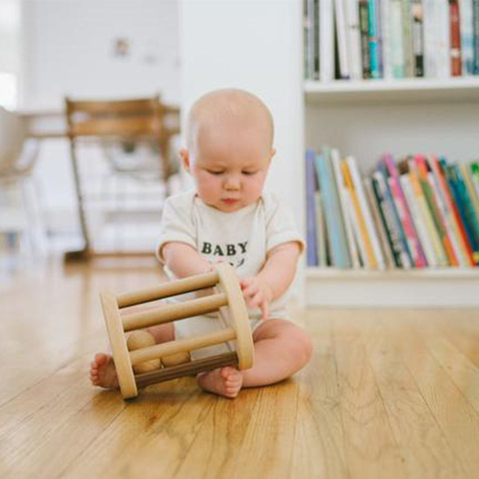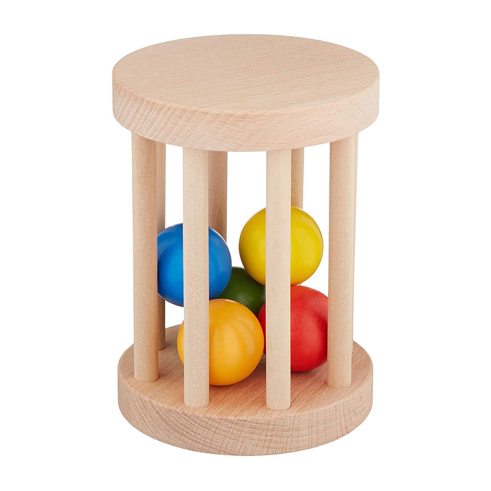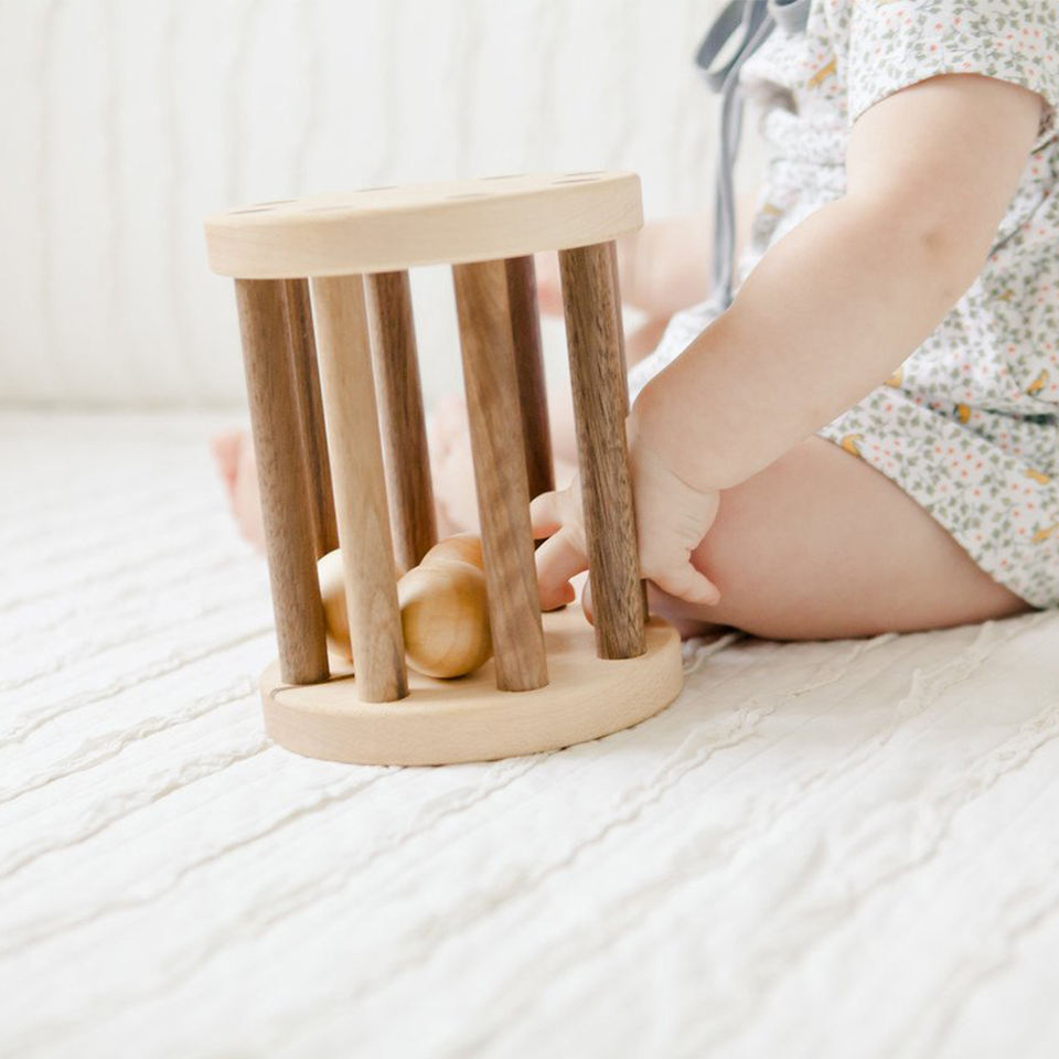 Jouet pour bébé en bois de hêtre non fini, hochet à roulettes Montessori LM KIDS, hochet à clochettes
