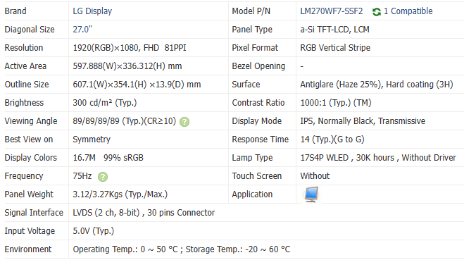 Taille de l'écran:27 pouces