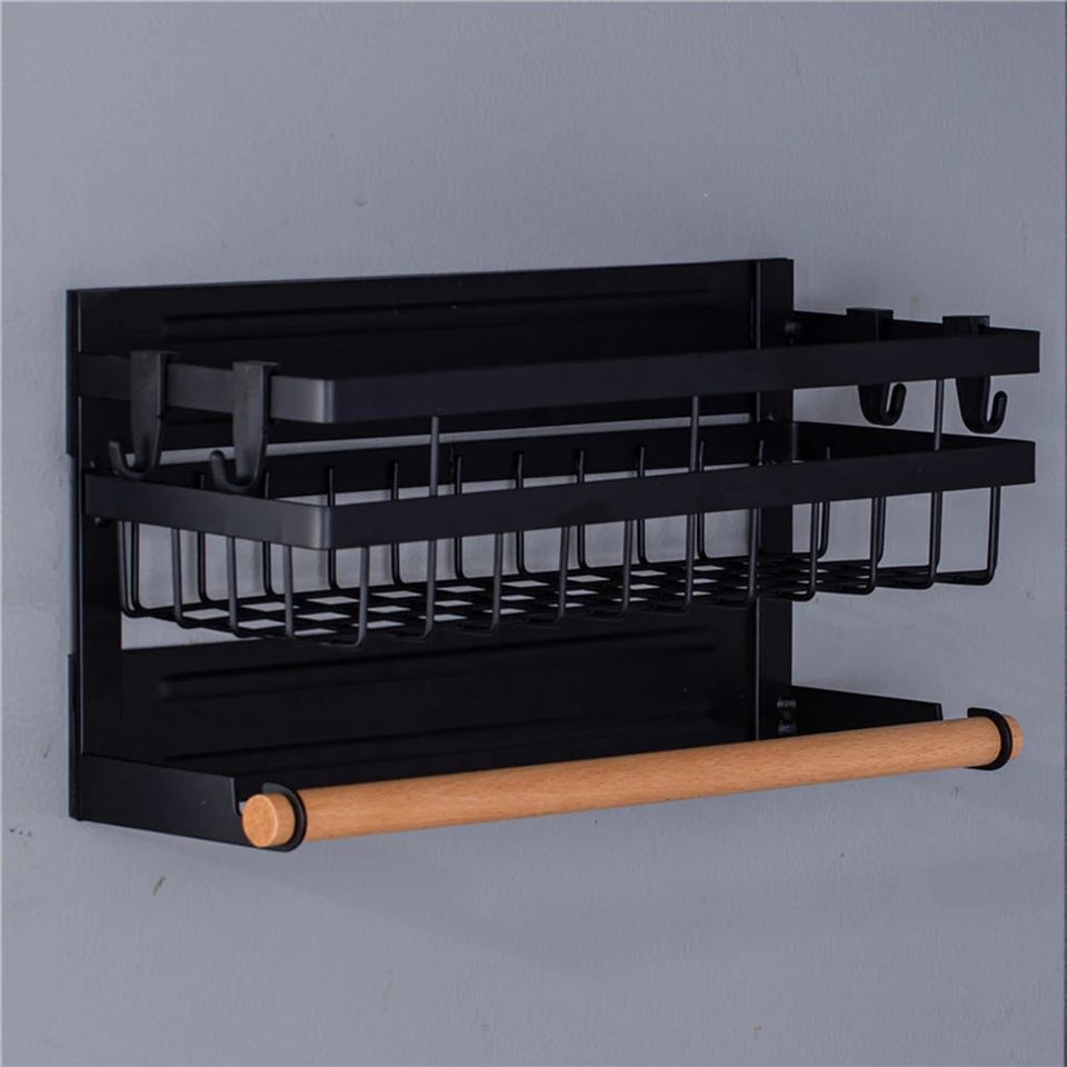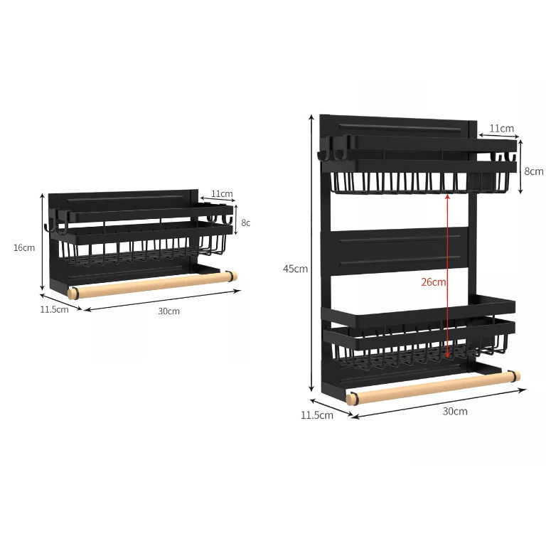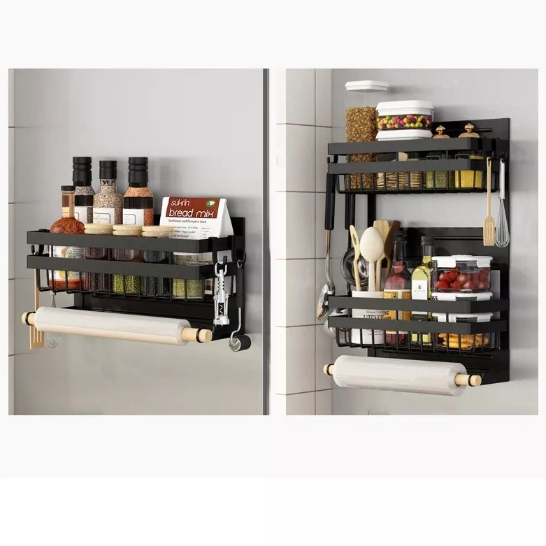 LMK311 étagère de rangement suspendue de cuisine support mural à 2 niveaux support à épices avec porte-serviettes en papier support à épices magnétique pour réfrigérateur