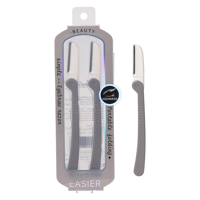 LMLTOP Rasoir à sourcils pliable, lot de 2, en acier inoxydable, gris et blanc, tondeuse portable pour usage général