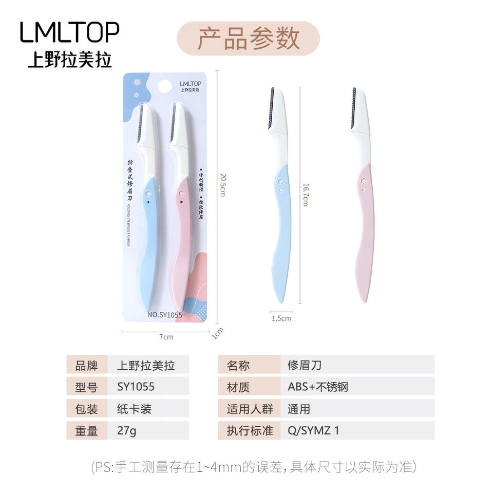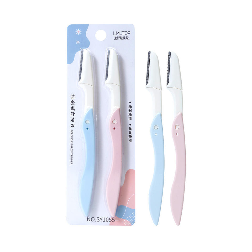LMLTOP Rasoir à sourcils pliable, lot de 2, filet de protection en acier inoxydable, pour débutants SY1055