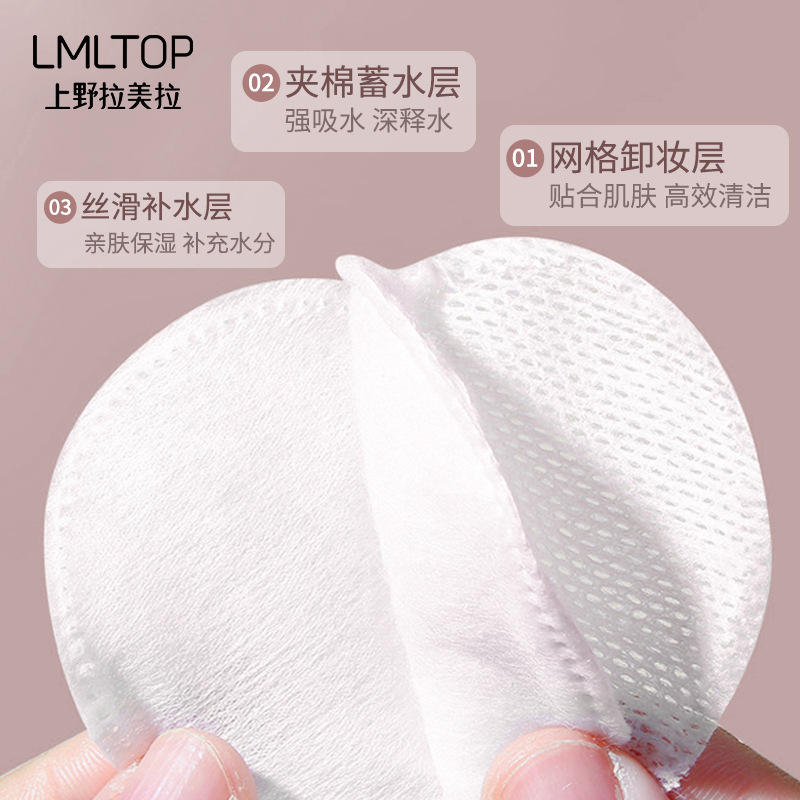 Disques de coton ronds LMLTOP 80 pièces, trois couches, doux, respectueux de la peau, pour le démaquillage et le soin du visage.