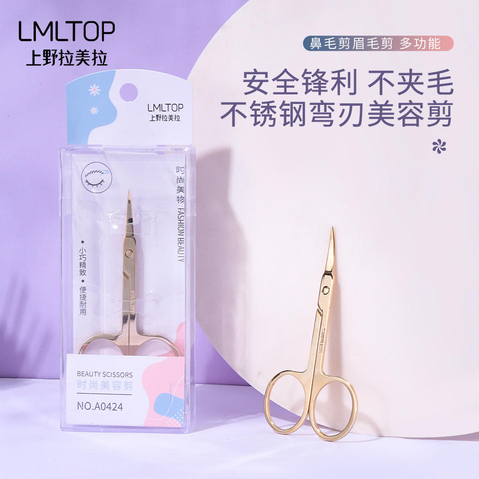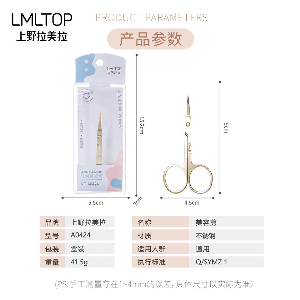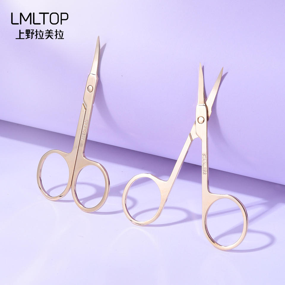 Ciseaux à sourcils LMLTOP en acier inoxydable à lame courbée, pointe fine, ciseaux de beauté A0424