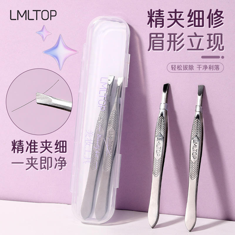 Pince à épiler en acier inoxydable LMLTOP, pointe inclinée, poignée antidérapante pour une épilation précise