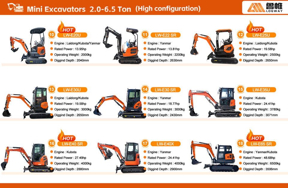 Mini-Pelle LOGWAY 4 Tonnes Livraison Rapide Moteur Kubota Pelleteuse sur Chenilles Mini-Chargeuse Utilisation Agricole et Domestique 4 Tonnes Mini-Pelle