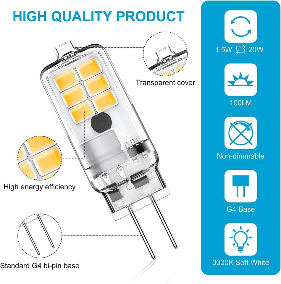 LOHAS G4 LED Mini Bulb AC/DC 12V 1.5W (20W Replacement) Non-Non-dimmable SMD2835 Lights Bulbs Suitable for Cabinet Hood