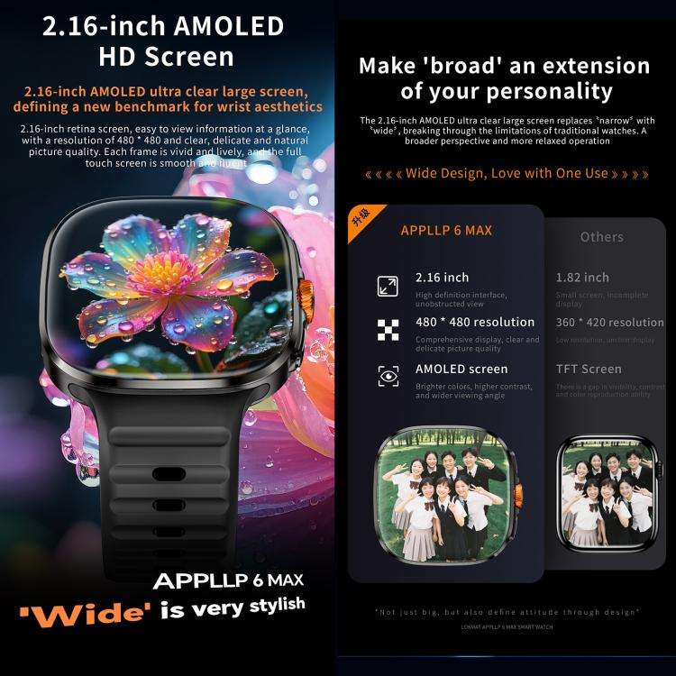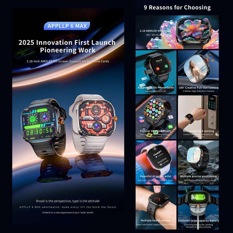 Montre connectée LOKMAT APPLLP 6 Max 4G, processeur quadricœur SC8541E, 3 Go + 32 Go, Android 8.1, appel vidéo, fréquence cardiaque (noir)