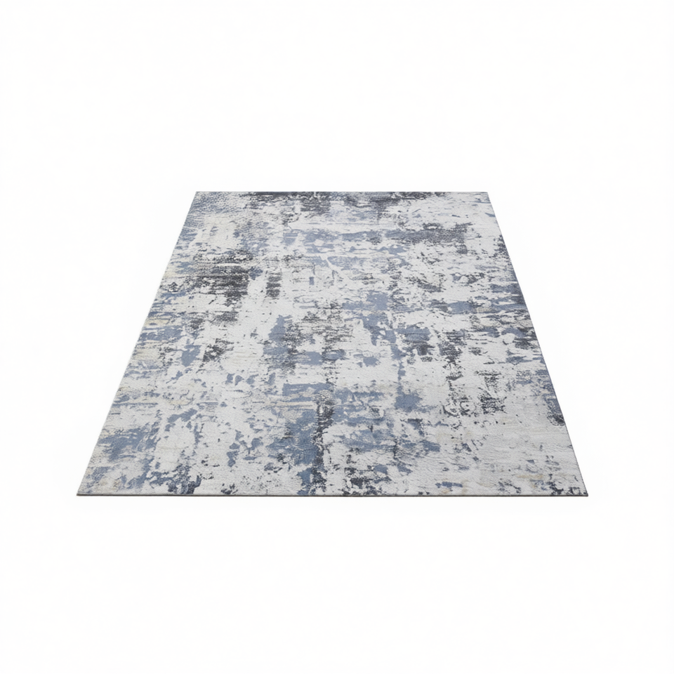 Tapis rectangulaire Loom Luxe Abstract 8x10 gris denim, anti-déchirure, résistant aux taches, pour salon, bureau à domicile