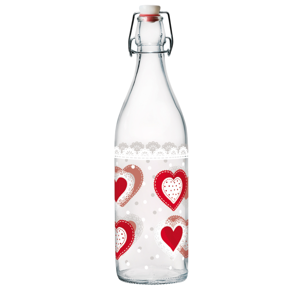 Bouteille en verre transparent LORY 1LT avec décoration ISOTTA et bouchon