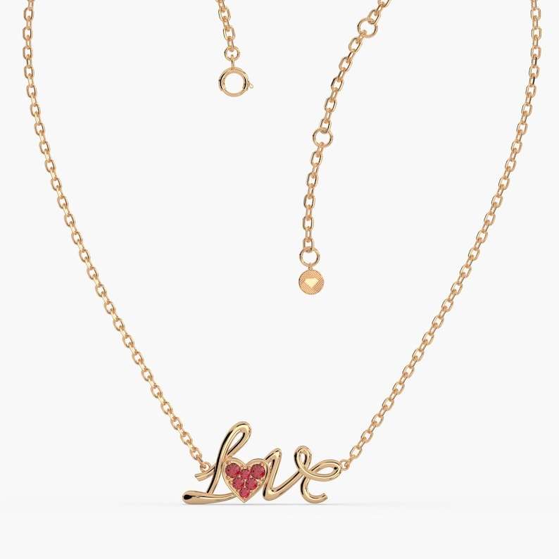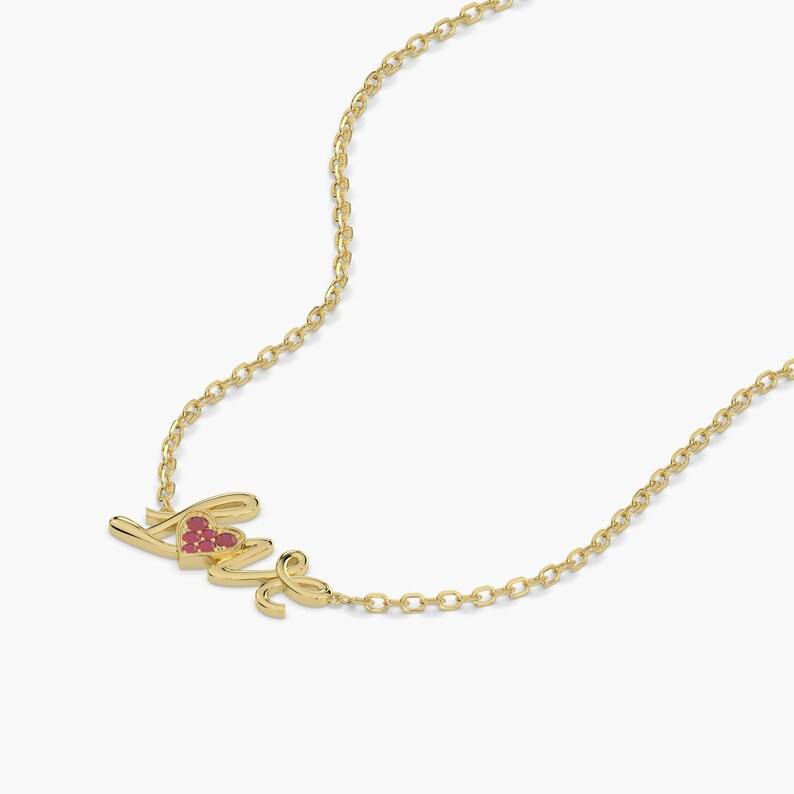 Lettre LOVE Pendentif en rubis naturel en argent sterling 925 plaqué or 14 carats Cadeau d'anniversaire pour femmes Collier fait main