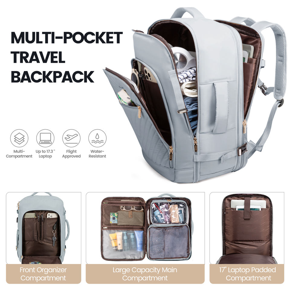 LOVEVOOK 2025 Sac de voyage de grande capacité avec organisateur de maquillage 17in Sac à dos pour ordinateur portable pour femmes hommes Voyage Week-end