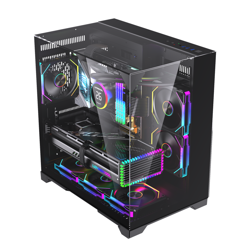 LOVINGCOOL Factory Custom Gaming Computer Cases et tours Cpu Case Spcc métal Vertical ATX Comput bureau Cabinet verre PC Case