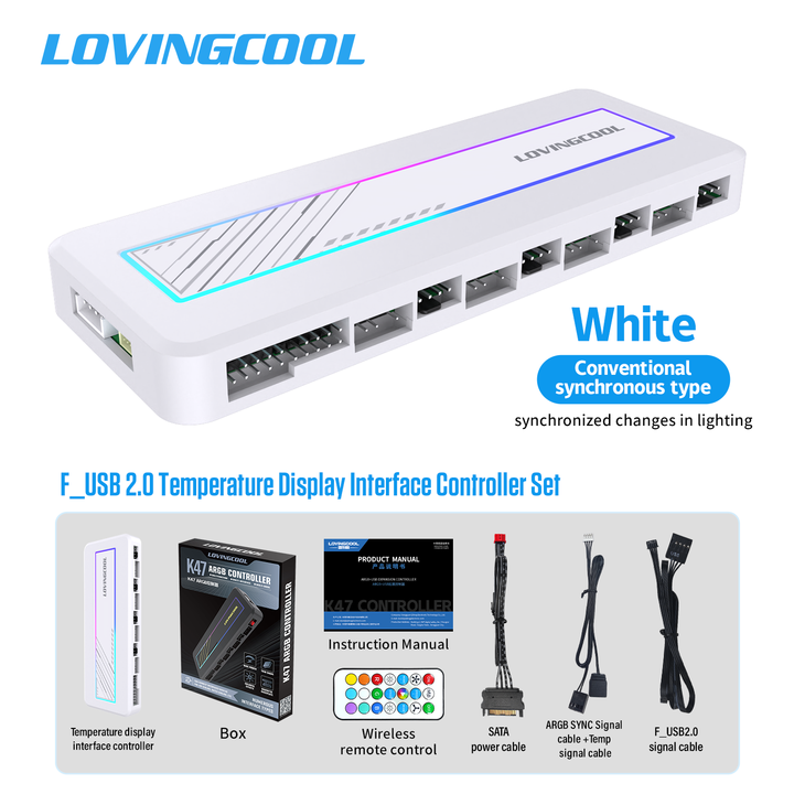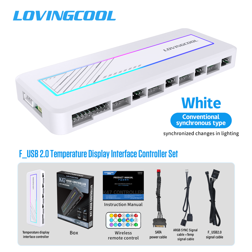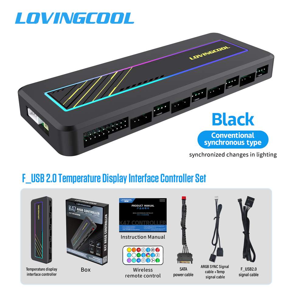 LOVINGCOOL Nouveau Kit de Contrôle de Ventilateurs pour Boîtier PC, Double 10 Ventilateurs avec Interface USB 2.0, Extension de Connexion Multimédia pour Radiateur