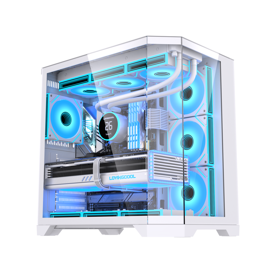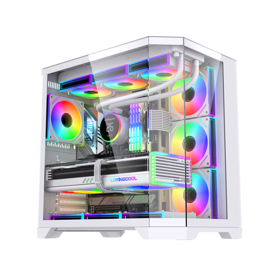 LOVINGCOOL Boîtier PC Tour ATX Complète de Jeu, Cube en Verre Panoramique avec Écran Surdimensionné, Refroidisseur Liquide 360mm