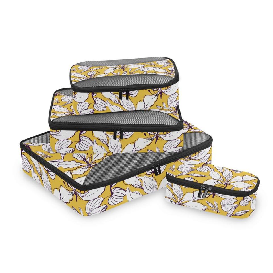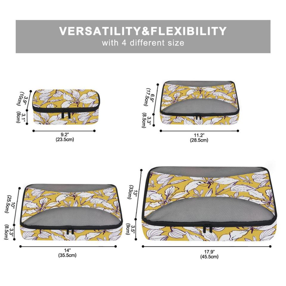 Lot de 4 cubes de compression légers à motif floral, faible MOQ, avec fermeture éclair, pour organiser les bagages