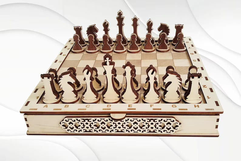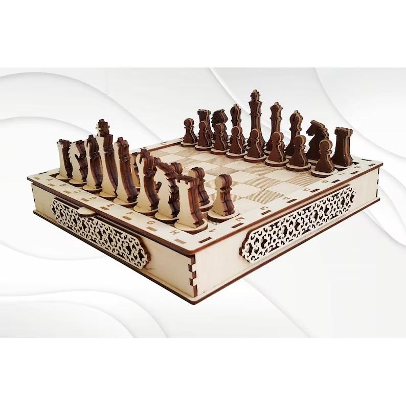Jeu d'échecs de luxe fait main en bois d'acacia découpé au laser, taille 12 pouces, à bas prix
