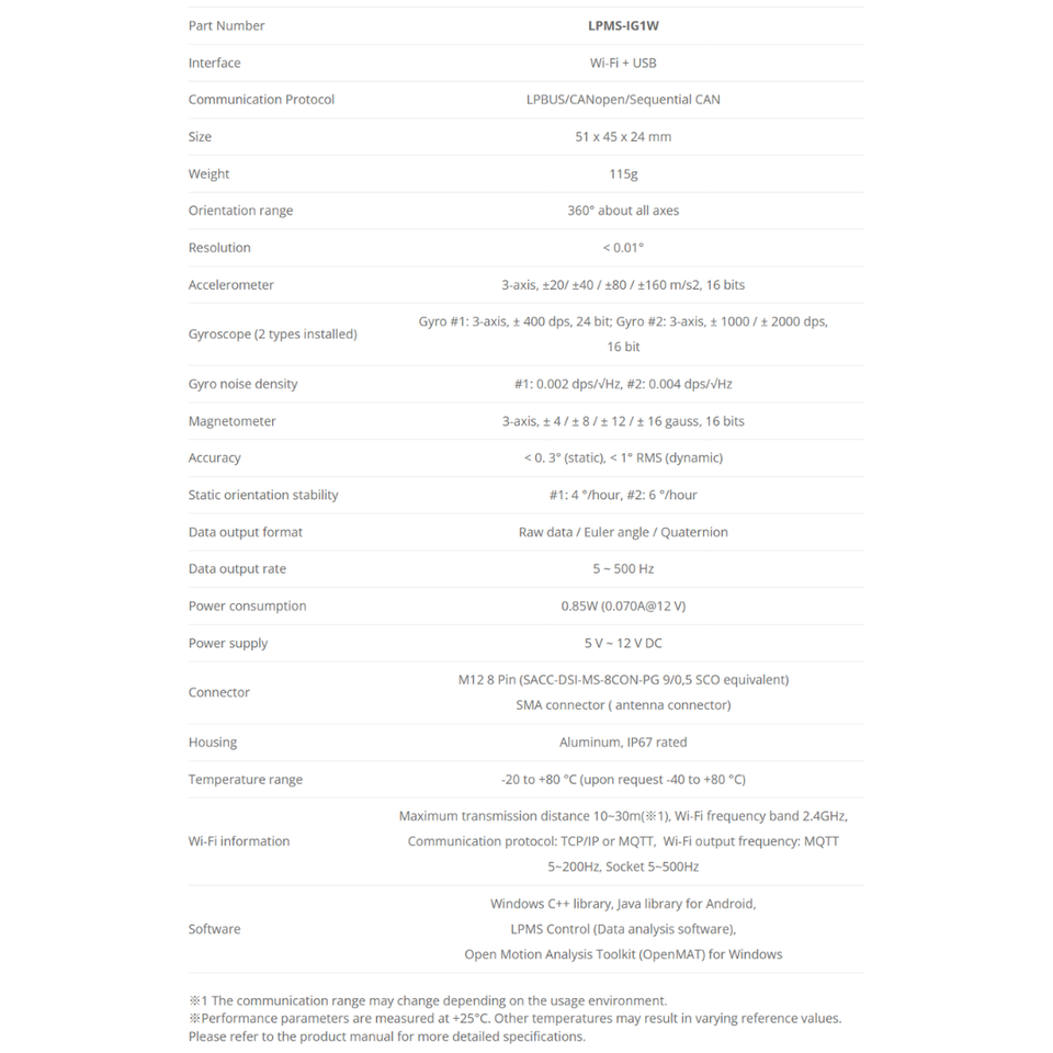 Système LPMS-IG1W:Sortie de signal Wi-Fi