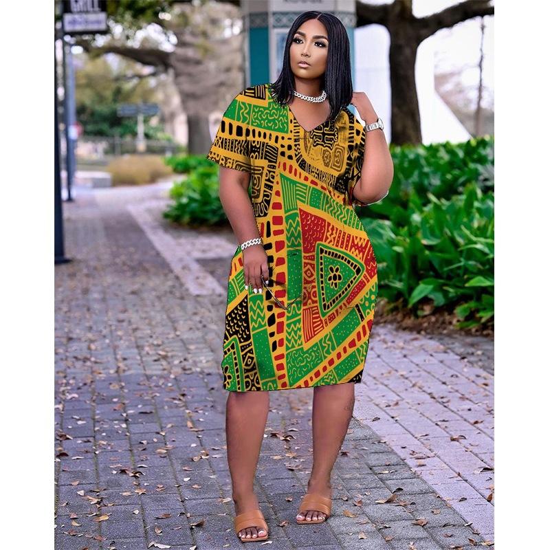 LQ Series Personnalisé Impression Numérique Motif LOGO Robes Personnalisées Femmes Africain Casual Summer Dress Loose T Shirt Dress