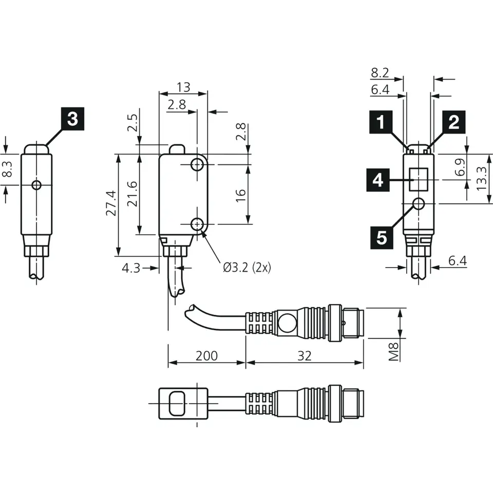 Barrières lumineuses et capteurs très petits et efficaces, facilesment intégrables, de la série O-20, modèle LR21K4000P3-K-T4