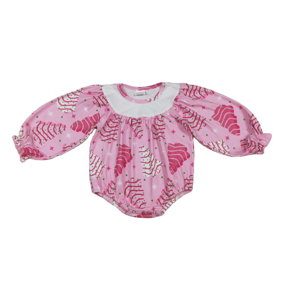 LR2333 Infant baby girl pink Christmas trees print kids wholesale romper long sleeve jumpsuit child sleeper set