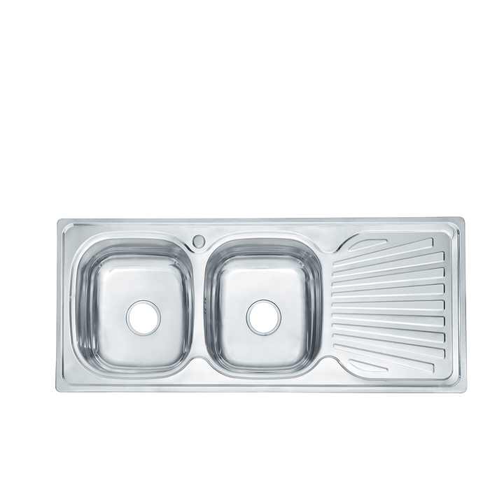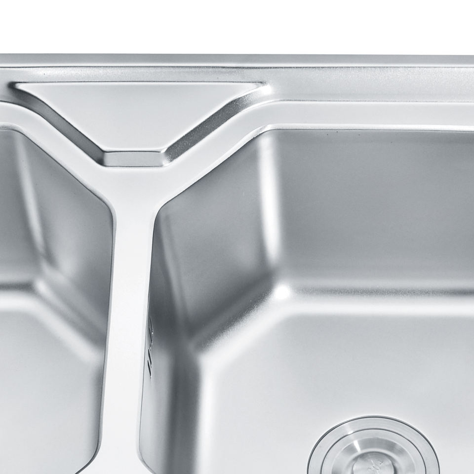 LS-12050 Meilleur Vente Layon ou Insérer Bord Pressée Éviers De Cuisine double Bol avec Égouttoir Évier prix Pas Cher Sans clips