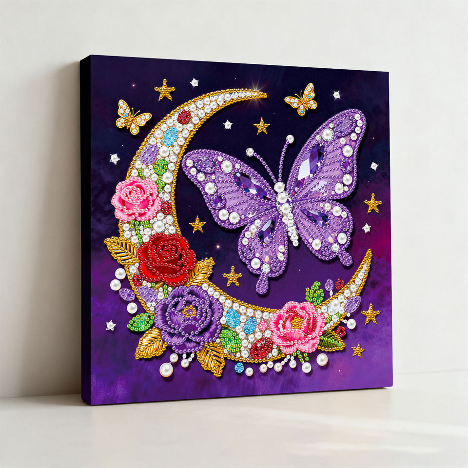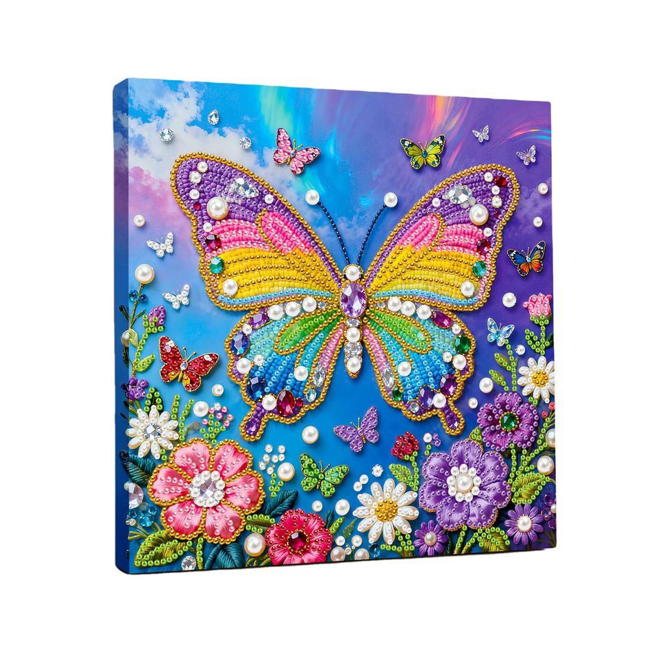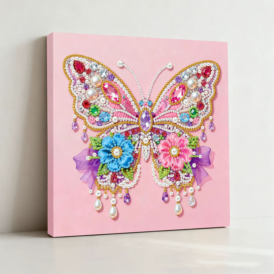 Kit de peinture perlée 5D DIY LS, peinture de papillons sur toile, perles rondes demi-perles, ensemble de peinture artisanale avec cadre